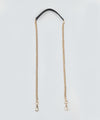 Load image into Gallery viewer, Gold chain strap with a black leather handle on a light gray background.